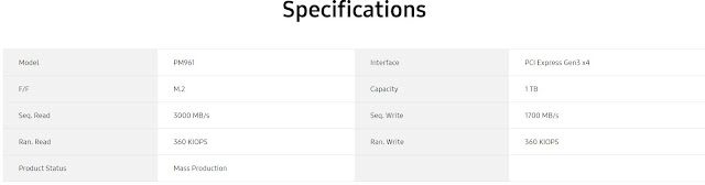 這裡我舉我的NB正在使用的Samsung MZVLW1T0HMLH-000H1為例,連續讀取速度達3000MB/s,大概是EMMC 5.1的12倍,大概是UFS 2.1的3.26~5.66倍。連續寫入速度達1700MB/s,大概是EMMC 5.1的13.6倍,大概是UFS 2.1的3.09~4.25倍。隨機讀取速度大概是EMMC 5.1的32.7倍,UFS2.1的5.37倍。隨機寫入速度大概是EMMC 5.1的27.69倍,UFS2.1的6倍。